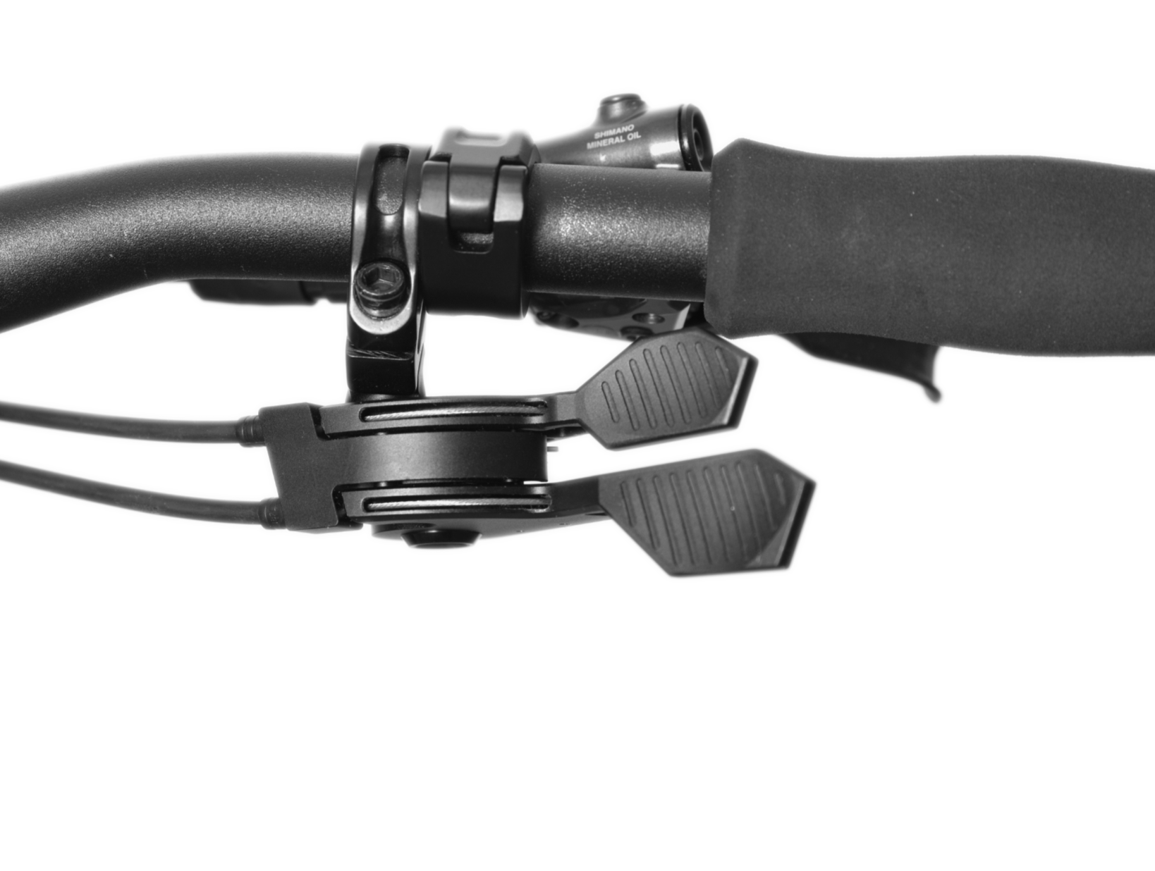 Mit nur einer Daumenbewegung schaltest du bis zu zwei Gänge pro Richtung – ideal für schnelle Beschleunigungen, technische Anstiege und flüssige Abfahrten. Fein gefräste Griffrillen auf der Hebeloberfläche sorgen für sichere Kontrolle, auch bei Nässe oder Schlamm.